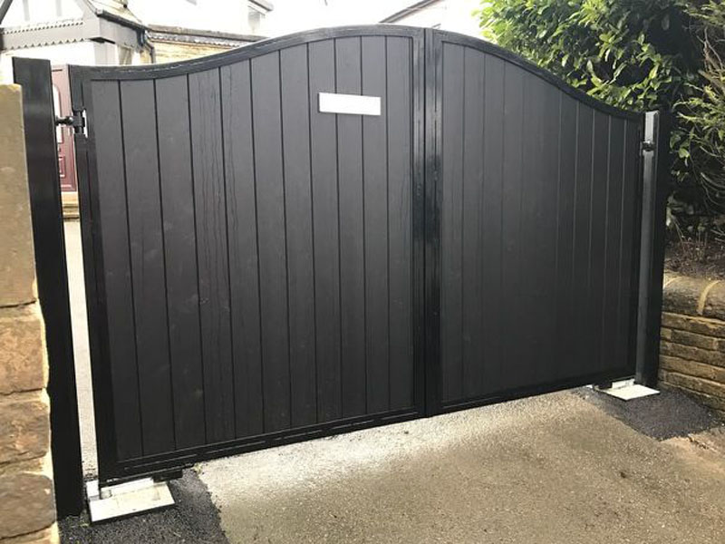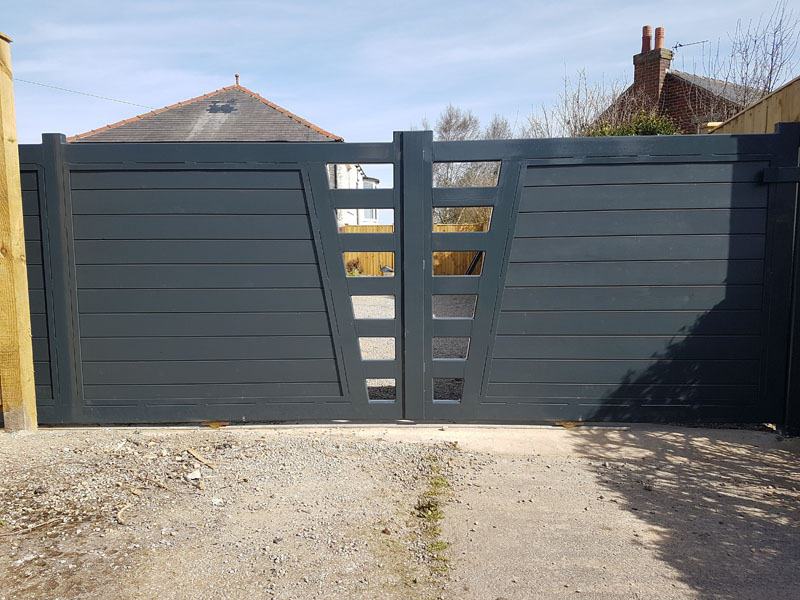 Adfabs Automated Gates offer a wide range of timber clad or composite clad security gates which are fabricated from a box section or flat bar steel outer frame to provide the strength and an exceptional look. The frame is then fully galvanised to prevent rusting and is then powder coated to provide a quality, durable finish.